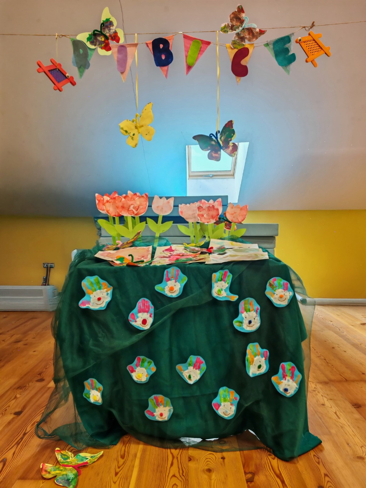 Mjesec travanj u našoj skupini protekao je u znaku proljeća, igre i istraživanja svijeta oko nas. Kroz temu **kukaca**, djeca su s veseljem promatrala i upoznavala male životinjice. Imenovali smo ih, oponašali njihove pokrete i kroz igru učili o njihovom izgledu. Posebno su nas razveselile **bubamare**. Izrađivali smo ih raznim likovnim tehnikama, brojali točkice i razvijali finu motoriku kroz jednostavne i zanimljive aktivnosti. Povodom **Dana planeta Zemlje**, razgovarali smo o prirodi koja nas okružuje. Kroz igru smo učili čuvati okoliš – pospremati iza sebe, bacati papiriće u koš i brinuti o prostoru u kojem boravimo. Sudjelovali smo i u **KreAkciji**, gdje su djeca kroz likovne aktivnosti izrađivala svoje radove. Njihovi veseli i šareni uradci bili su izloženi povodom Dana otvorenih vrata vrtića. Travanj je bio ispunjen igrom, istraživanjem i veseljem, a naše „Ribice“ svakodnevno uče kroz pokret, doživljaj i zajedništvo.